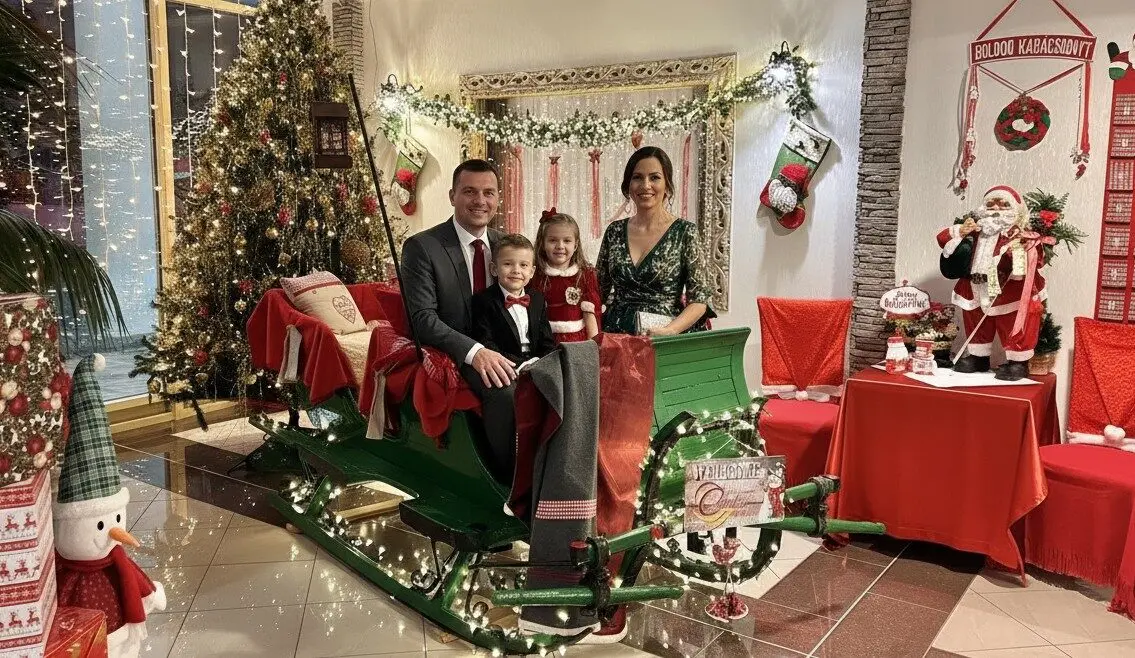 A VARÁZSLATOS KARÁCSONYI KÉSZÜLŐDÉSBEN növelve az ÜNNEPI HANGULAT fényét a szálloda halljában egy IGAZI LOVAS SZÁNT állítunk be!