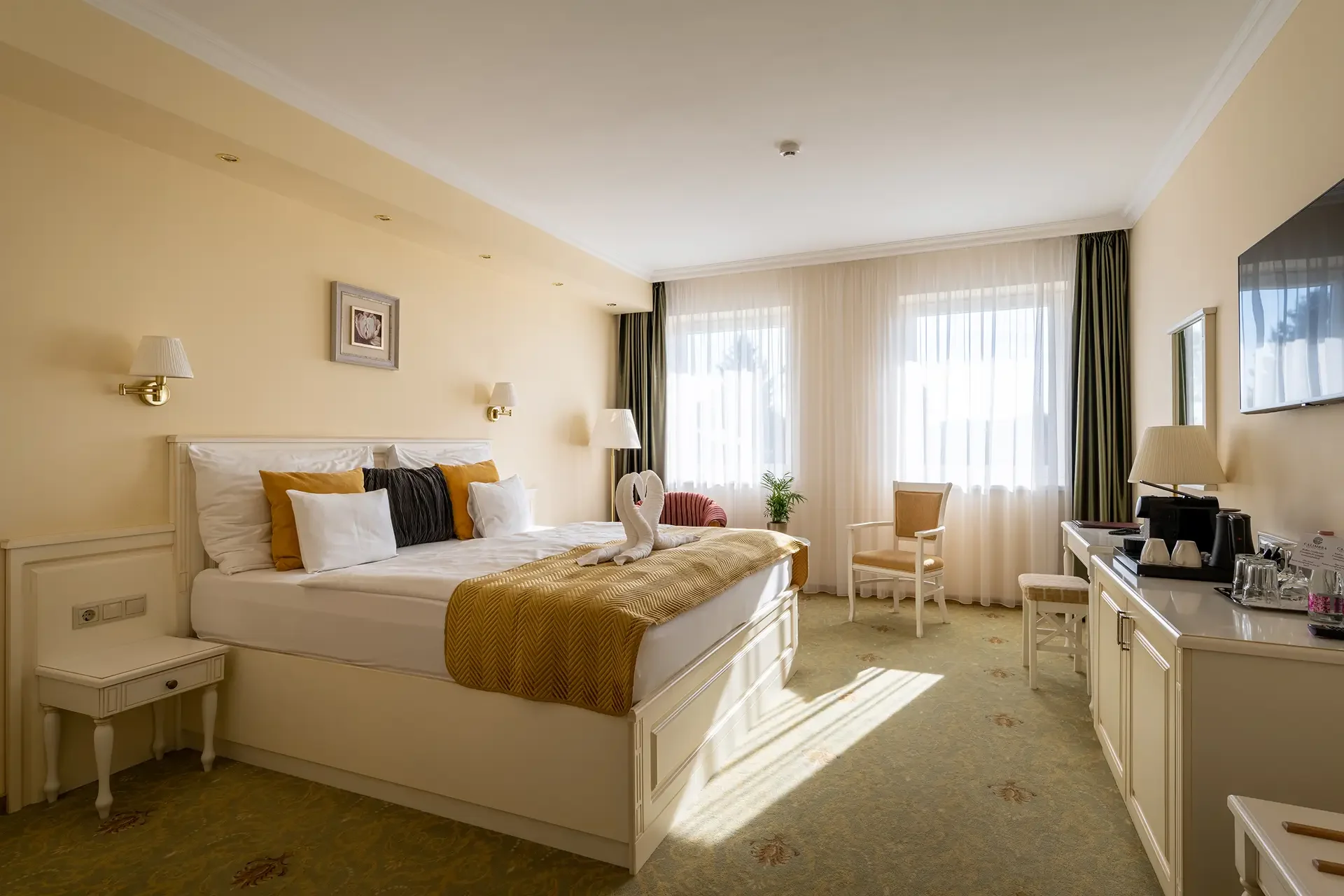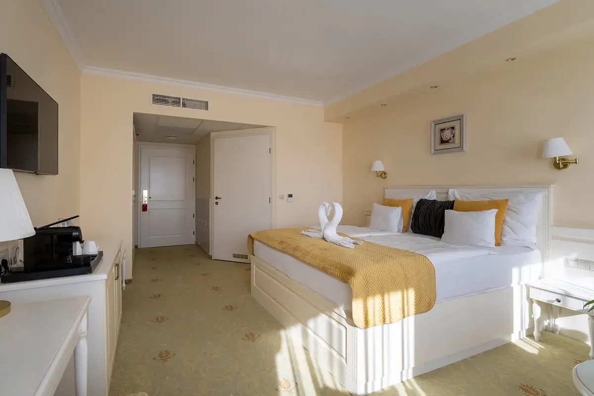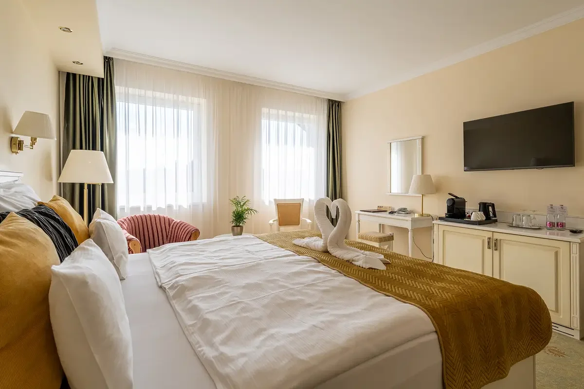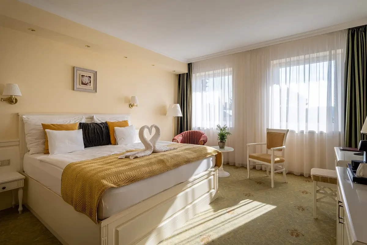 Modern stílusú Superior szobáink ideális választást nyújtanak két fő részére. A világos, keleti fekvésű szobák tökéletes helyszínt kínálnak a nyugodt feltöltődéshez – erkély nélkül, de annál otthonosabb hangulattal.